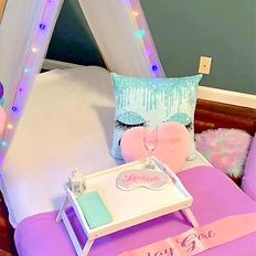 Up to 5 girls - $425 Up to 10 girls - $525 The Teepee Party Deluxe package includes teepees, decor pieces, customized masks, cookies, breakfast trays, champagne glasses, non-alcoholic Sparkling Rosé, and a sash for the birthday girl. The girls get to keep all items except the teepees, decor, and breakfast trays. You will be required to sign a contract to confirm your booking. You can download the contact on our INFO tab, or we can email you a copy. $150 non-refundable deposit due the day of booking. The remaining balance is due 7 days prior to the event. NOTE: Travel fees are not included in the price: * 25 miles and under - FREE * 25-50 miles - $50 * 50-75 miles - $75 * More than 75 miles - Price varies. Please contact us.